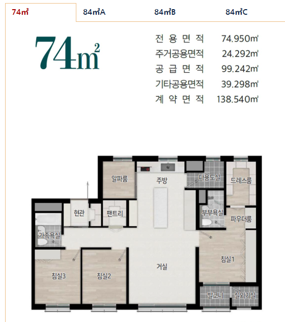 - 유형 2: 84㎡ A 등 (선택지는 사이트에서 확인 가능)