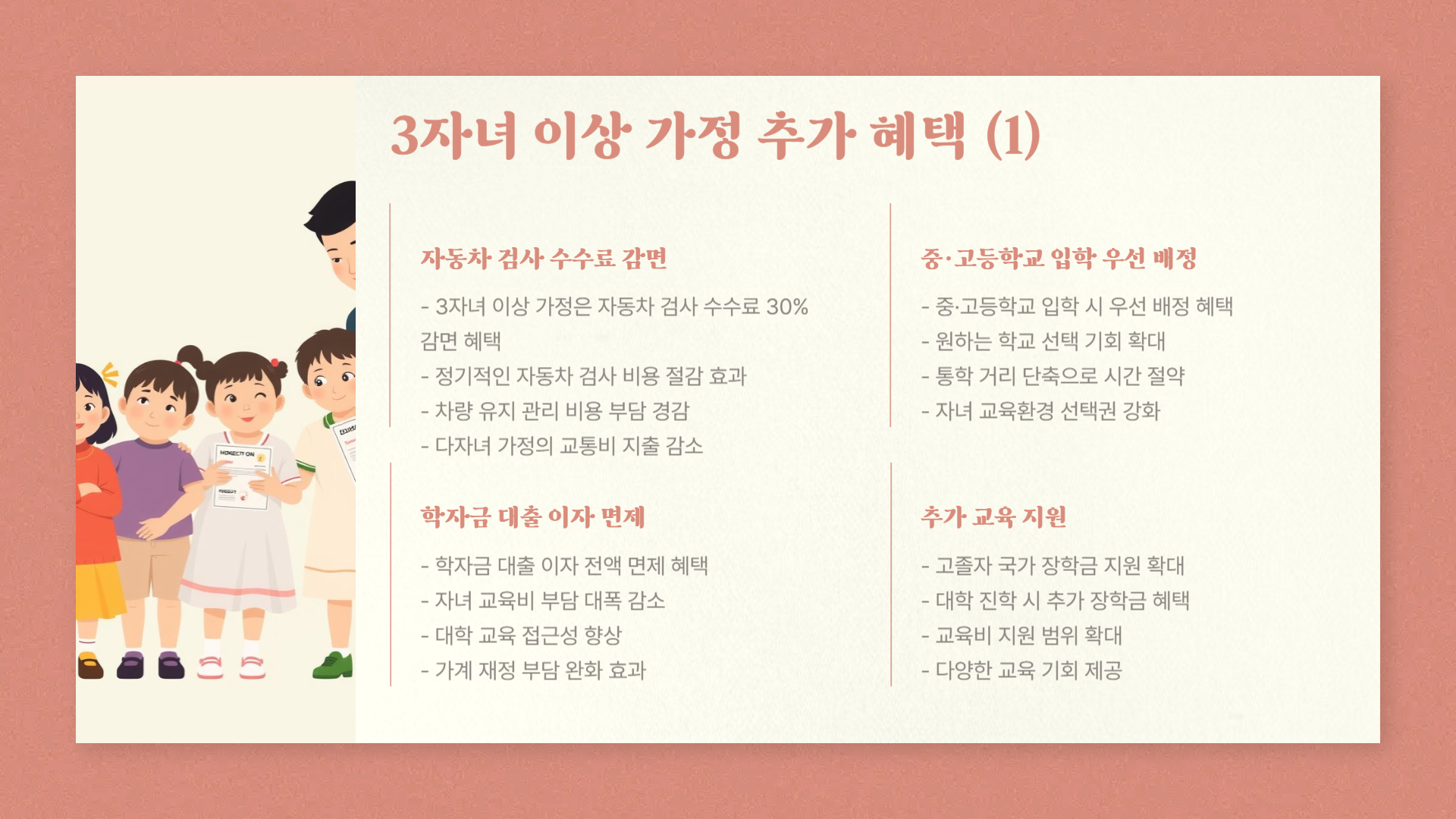 👉 지금 바로 본인 가구가 받을 수 있는 다자녀 혜택을 확인해 보세요!