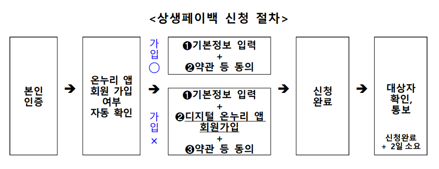 만약 상생페이백 신청을 안 하더라도, 누리집에서 본인인증만 하면 앱 가입은 별도로 할 수 있어요. (가입 완료까지 1일 소요)